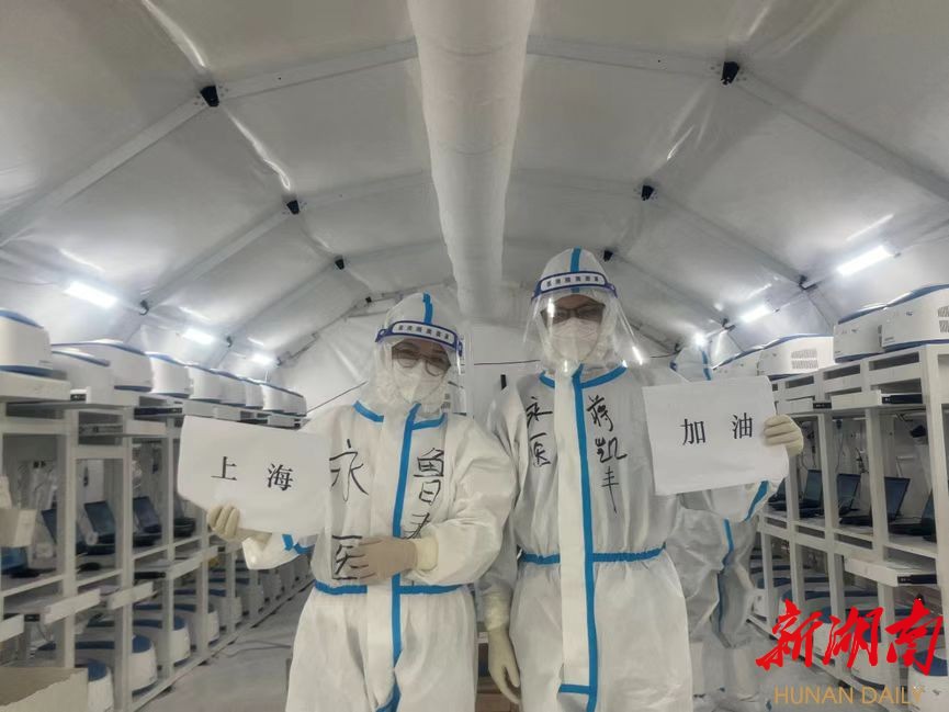 这是一份“湘”“沪”支持的深厚情谊。这批由310人组成的队伍,援沪期间累计完成检测量260余万管,为上海高频次的全员核酸检测贡献了坚实的湖南力量。