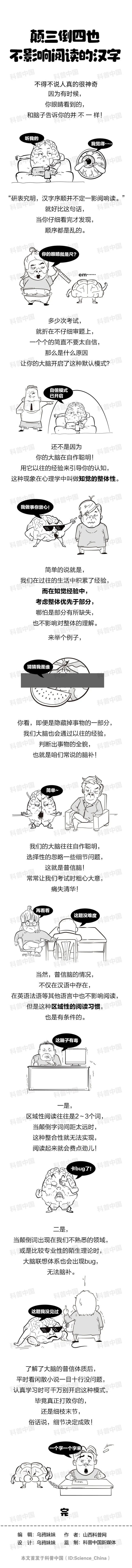 这究竟是怎么回事儿呢?为什么颠三倒四的汉字也不会影响你阅读呢?下面就为大家揭开谜底: