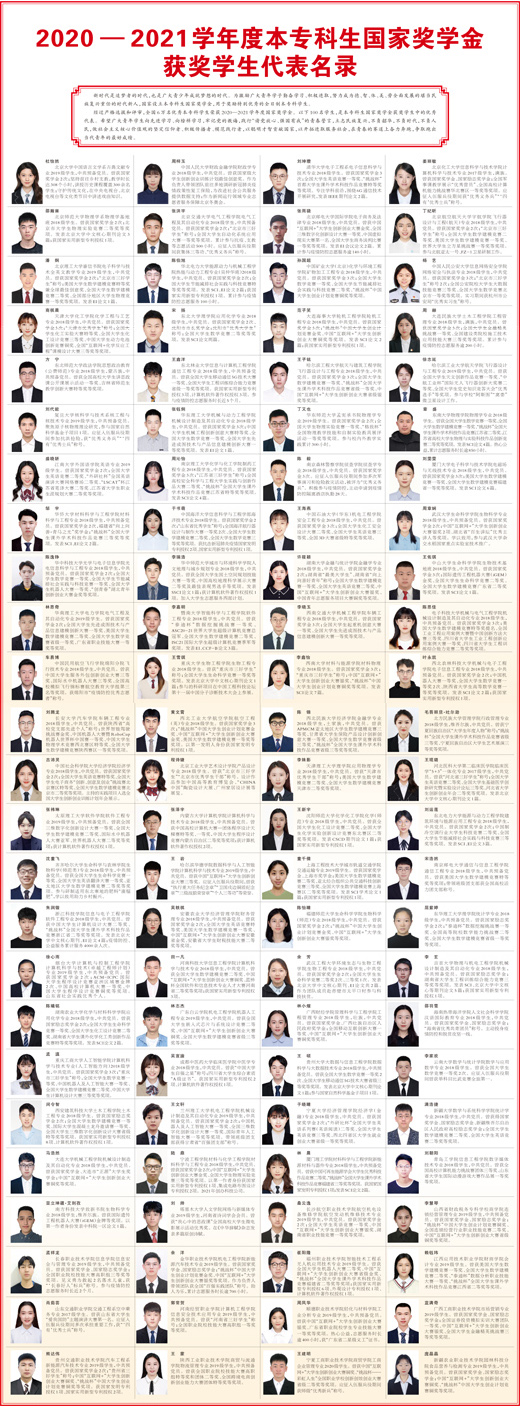 湖南日报5月4日讯(全媒体记者 余蓉)为激励广大青年学子勤奋学习、积极进取,努力成为德、智、体、美、劳全面发展的堪当民族复兴重任的时代新人,国家设立本专科生国家奖学金,用于奖励特别优秀的全日制本专科学生。经过严格选拔和评审,全国6万名优秀本专科学生荣获2020—2021学年度国家奖学金。今天,100名本专科生国家奖学金获得者代表登上人民日报,其中,湖南高校4人上榜!