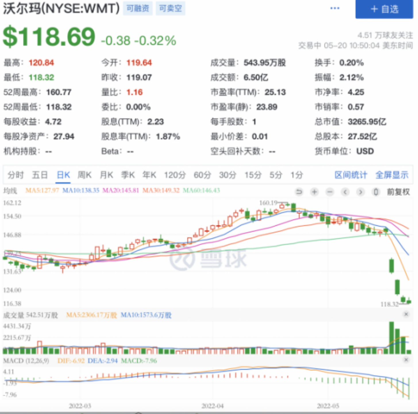 股价“暴雷”,与沃尔玛近日公布的2022年第一季度财报有关。