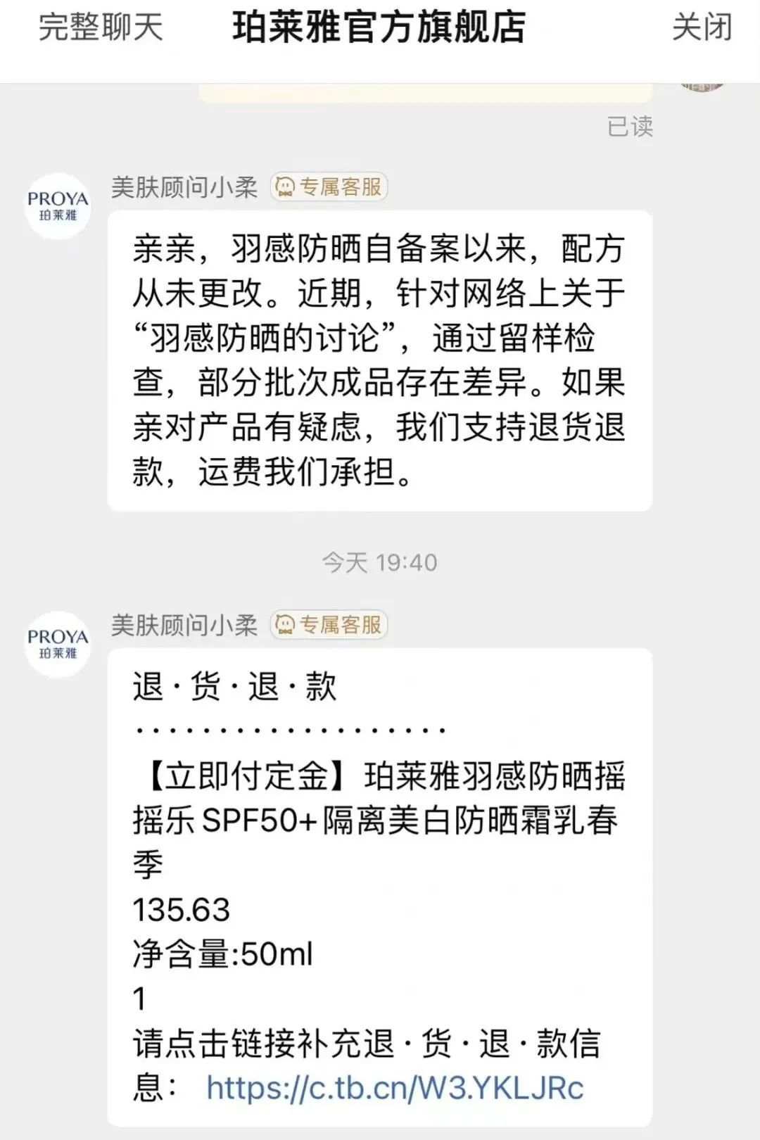 珀莱雅表示,近期,网络上有一些关于该公司产品“羽感防晒”(珀莱雅轻享阳光羽感养护精华防晒液)的讨论,针对这些讨论,公司相关工作人员于27日晚连夜赶往工厂所在地,截至28日下午2点,完成了对多个批次留样产品的相关检查。珀莱雅强调,“羽感防晒”自备案以来,配方从未更改,由于是油包水低粘度的防晒产品,生产工艺难度高。在检查中发现部分批次成品存在差异,影响了部分消费者的使用体验,在此深表歉意。