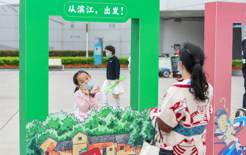 湖南日报·新湖南客户端5月14日讯(记者 刘涛)今天下午,“从滨江,出发!”2022年中国旅游日社科普及活动在长沙滨江文化园举行,现场设置“云游”中国环节,受到现场市民喜爱。