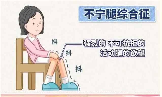 如有以下症状,可能考虑为不宁腿综合征,需引起注意:强烈、迫切想要移动肢体的冲动、欲望,夜间睡眠或安静时出现或加重;肢体深处不适感描述各异,如蚁爬感、蠕动感、灼烧感、触电感、憋胀感、酸困感、牵拉感、紧箍感、撕裂感等,甚至疼痛。这种不适感尤以小腿显著。