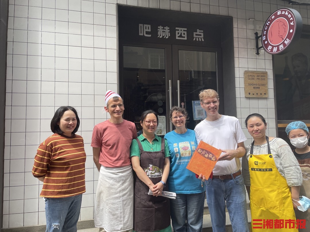 穿越湘春路的热闹喧嚣,走进隐匿在闹市中的吧赫西点,两位鼻梁高挺、眼窝深邃、头戴白色厨师帽的中年男子正交流着德式面包制作方法。这两位德国人,一位是吧赫西点原店长吴正荣,而另一位是新店长何墨凯。