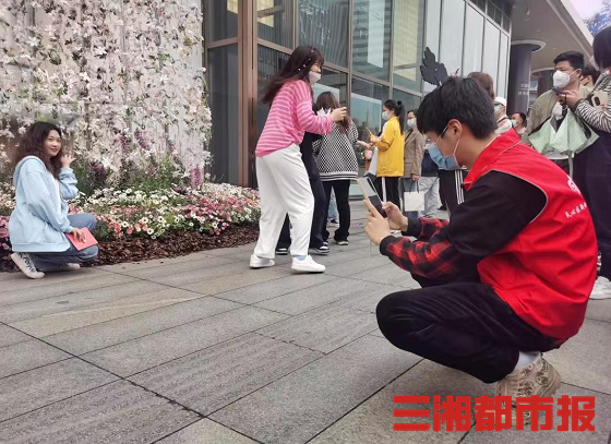 “请各位游客朋友戴好口罩,按照一米间隔排好队,扫场所码进入。”来自中南林业科技大学的黄丽艳,与同学一起放弃了五一假期的出行计划,选择在黄兴广场开展文明劝导志愿服务活动。