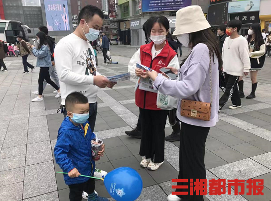 五一期间,志愿者在黄兴广场、王府井、悦方购物广场、云玺潮汇等地开展文明旅游、疫情防控、文明交通、不文明行为劝导等志愿活动,倡导“绿色、循环、低碳”的环保理念,让游客在服务过程中了解学习相关知识,切实提升活动体验感,引领文明新风尚。