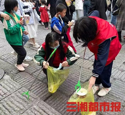 小朋友和家长们共同参与“星仔伴您游长沙”志愿服务,化身小小“星仔”,走上街头向过往行人介绍天心美食、美景,投身文明劝导志愿服务,参加垃圾分类宣传等,不仅体会到了文明劝导的不易和辛劳,更让文明出行,节能减排的理念深入人心。