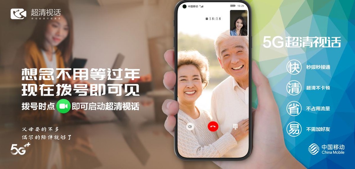 相比2G/3G/4G网络环境下的传统通话,5G超清视话凭借无需加好友、不占用流量、秒拨秒接通、超清不卡顿等优势,实力打造助老爱老数智沟通新场景。