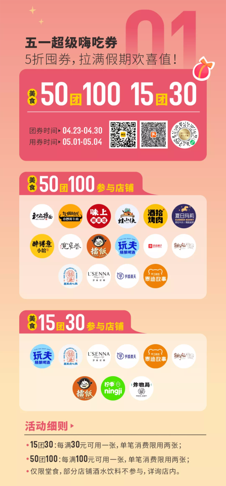 逢假日岳麓区各大品牌餐馆也铆足了劲要一展身手,众多餐饮店铺推出餐饮代金券,超级嗨吃券。拉满假期欢乐值!