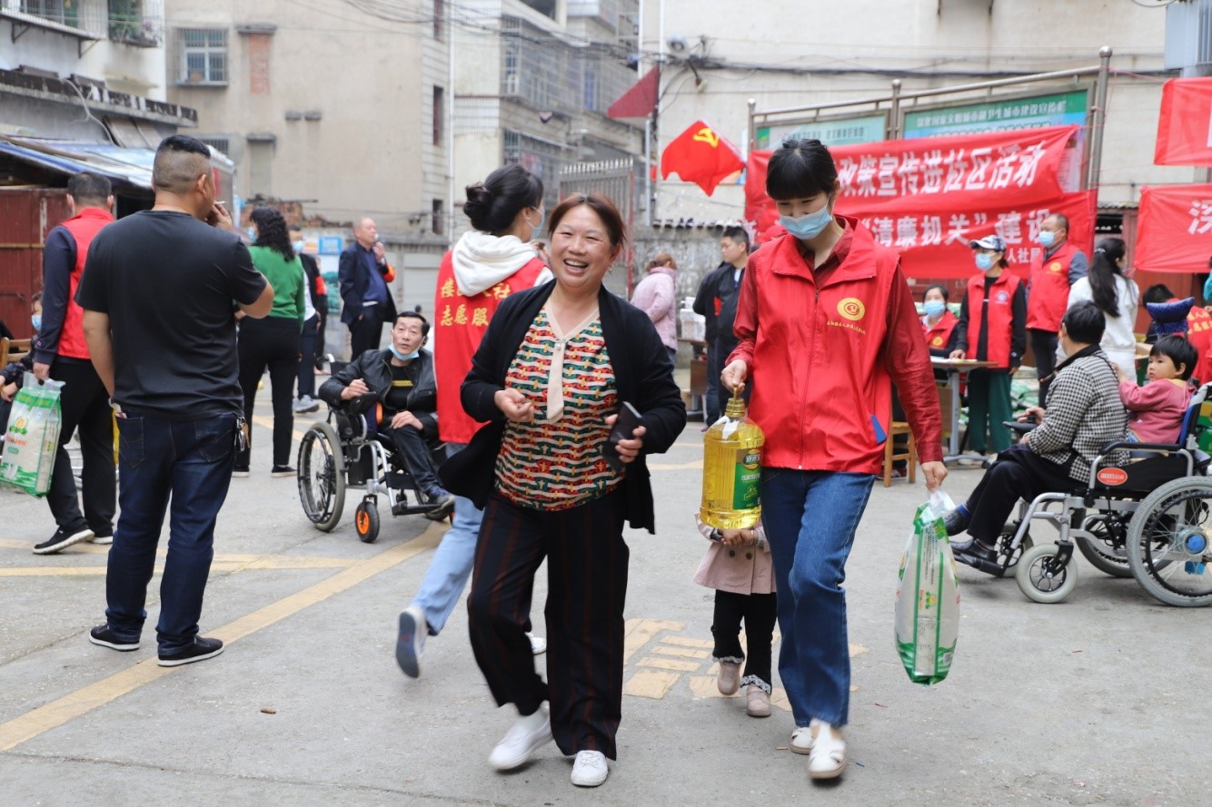 “现在政策好,党和政府对我们方方面面的关心很周到,我们生活越来越便利,各方面都有保障,感觉很安心。”岳阳楼区人社局志愿者肖浩在帮助杨珍珠搬送爱心物资入户时,杨大姐乐呵呵地向志愿者一再表示感谢,脸上写满幸福。
