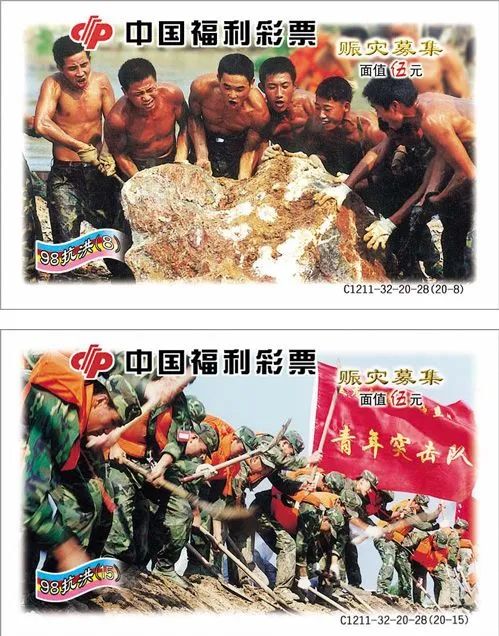1998年夏,我国长江、松花江、嫩江、珠江、闽江诸流域发生了百年不遇的特大洪水。由于洪水量级大、涉及范围广、持续时间长,这次洪涝灾害造成了巨大的经济损失。为了帮助灾区人民恢复生产,重建家园,发挥民政为政府分忧、为百姓解愁、民政为民、民政爱民的作用,中国福利彩票积极参与其中。当年10月,经国务院批准,在全国发行“抗洪救灾”专项募集福利彩票。一时间,“大力弘扬抗洪精神,万众一心重建家园”“奉献点滴爱,温暖万千人”“福利彩票,扶危救难,支援灾区,重建家园”的宣传口号传遍大江南北。