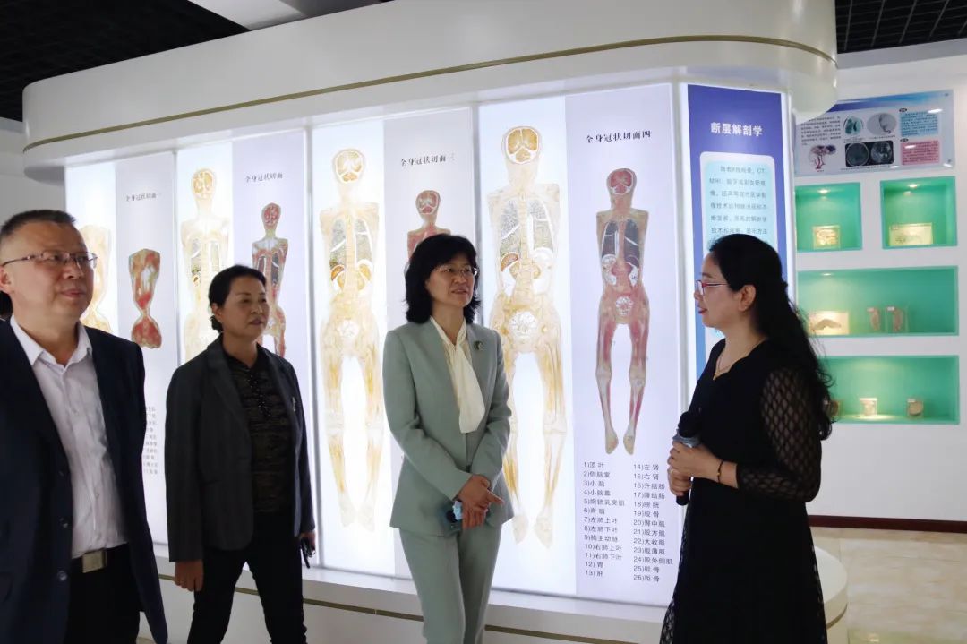 邱虹一行先后调研了学院游乐设施人才培养基地、创新创业基地、人体生命科学馆,详细了解学校统一战线工作开展情况以及教学科研成果发展等。
