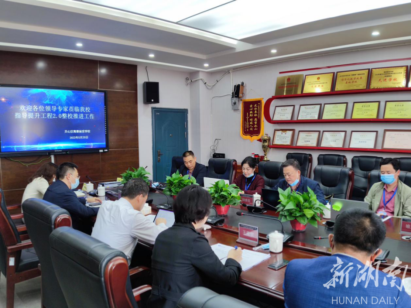 新湖南客户端5月25日讯(通讯员 孙慧)近日,在天心区教育局党委委员、天心区教育科学研究中心主任王雅敏,天心区教育科学研究中心书记余战勇,天心区教育科学研究中心副主任万丽英的陪同下,长沙市教育学院院长孙智明,长沙教育学院师训处主任汤新文,长沙市信息技术能力提升工程2.0评审组专家胡续伯等一行8人莅临天心区青雅丽发学校,对该校信息技术能力提升工程2.0整校推进工作进行现场验收。调研会议由胡绪伯主持。