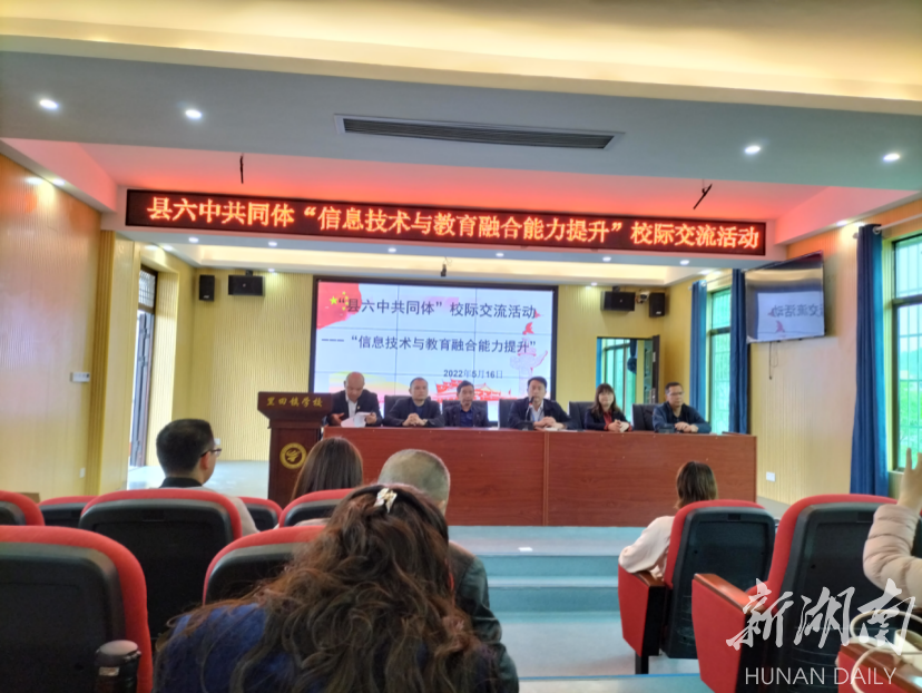 新湖南客户端5月18(通讯员 罗德胜 谭翠霞)为全面落实乡村教育振兴的战略部署,宜章县第六中学(以下简称 县六中)组织教育共同体学校以信息技术指导为重点,以提升乡村教师信息化水平为目标,于5月16日下午在宜章县里田镇学校举行了“信息技术与教育融合能力提升”校际交流活动。