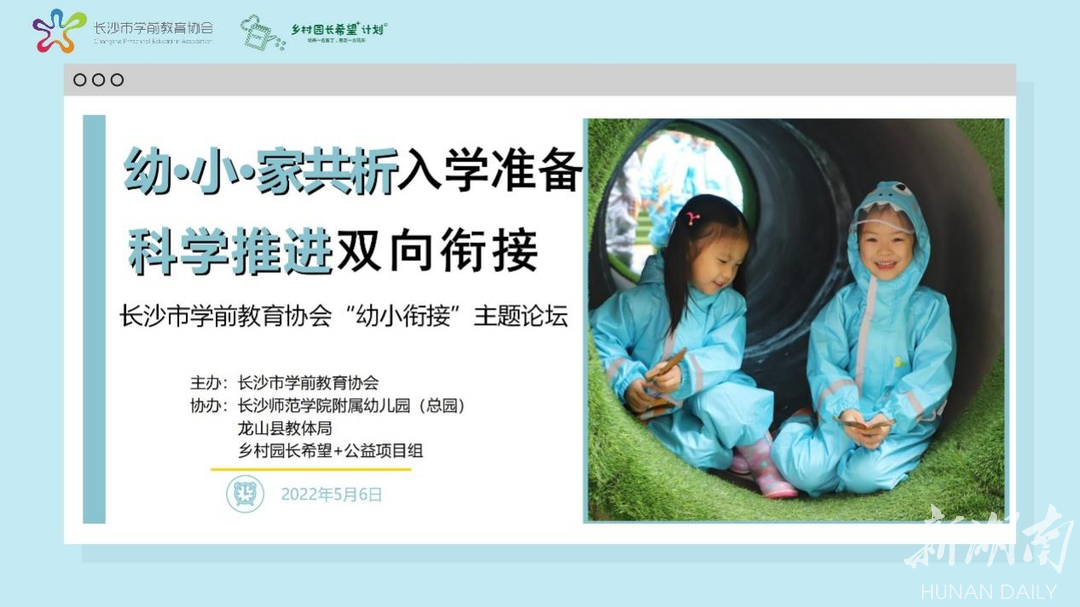 新湖南客户端5月7日讯(通讯员 周粮平 郑岚)随着2022年全国学前教育宣传月活动的启动,在“幼小衔接,我们在行动”的主题引领下,为落实长沙市教育局关于幼小衔接工作的文件精神,长沙市学前教育协会于5月6日上午在长沙师范学院附属第一幼儿园举办“幼·小·家共析入学准备、科学推进双向衔接”主题论坛。