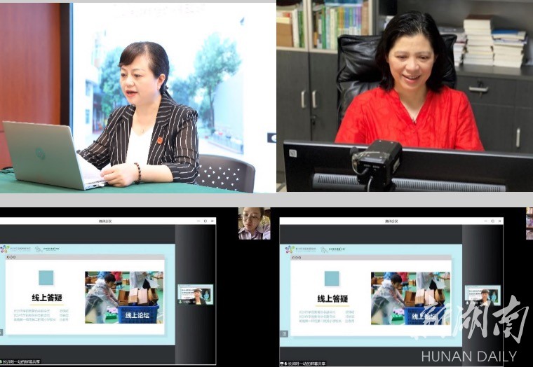 线上答疑环节,长沙师范学院附属幼儿园总园长罗晓红、长沙市雨花区教育局幼教集团总园长邓益云解答了前期调研中收集到的家长、教师的困惑与问题,为大家解读老师与家长们的幼小衔接“心声”,共同探寻幼小衔接“密码”。为了满足教师、家长个性化的需求,有两位家长通过连线直接向专家提问互动,湖南省第一师范学院第二附属小学校长汪春秀为家长进行了线上答疑,引导教师与家长既要提供包容与高质量的共情陪伴,又要放平心态、减少因担忧而产生的内心焦虑,为儿童留出自我适应、自我成长的空间和时间。