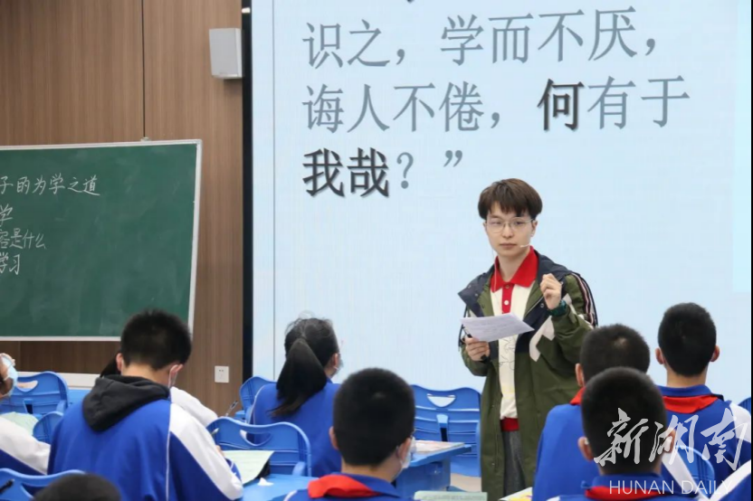 活动开始,砂子塘启新小学李建成、李东怡两位老师带来了两堂新颖别致的海读示范课。李建成老师给七年级学生授课《读<论语>,学成语》。他以“孔子的为学之道”为主线,从学习目的、学习方法、学习态度等方面从《论语》中遴选出十六章来教学生读《论语》,学成语,用成语。他采取喜闻乐见的乐读法教学,将枯燥乏味的文言文上得趣味盎然,学生热情高涨,课堂气氛活跃。