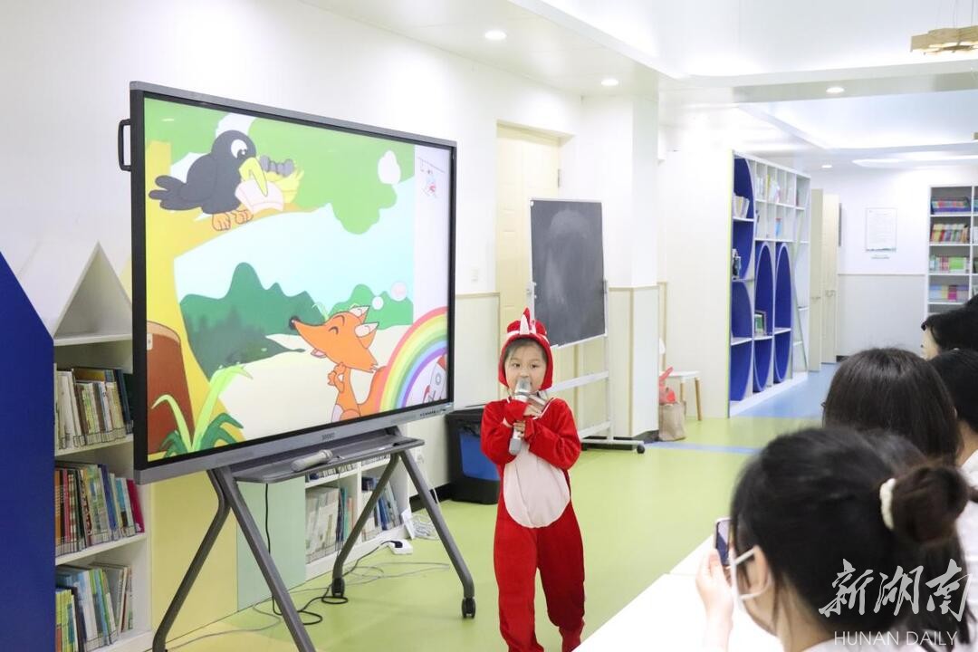 而在2001班赵悦彤同学悦耳动听的嗓音里,狐狸和乌鸦上演了一场活泼有趣却又寓意深刻的精彩表演:“记住,千万别让拍马屁的人钻了我们心里的空子!”