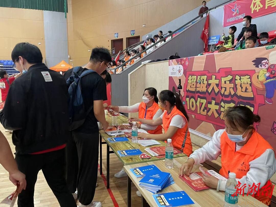 本次活动得到了体彩公益金的大力支持,是公益体彩助力健康中国和体育强国建设的体现。同时,郴州市体彩中心在活动现场设置了体彩宣传展位,现场除了“顶呱刮”即开型体育彩票体验外,还免费为广大市民赠送了体彩超级大乐透彩票,吸引了参赛运动员和现场观众踊跃参与,让更多的市民了解了中国体育彩票及其公益属性。
