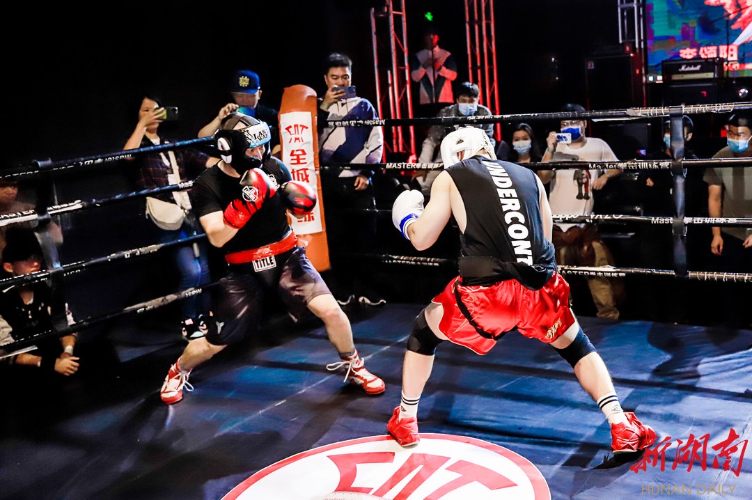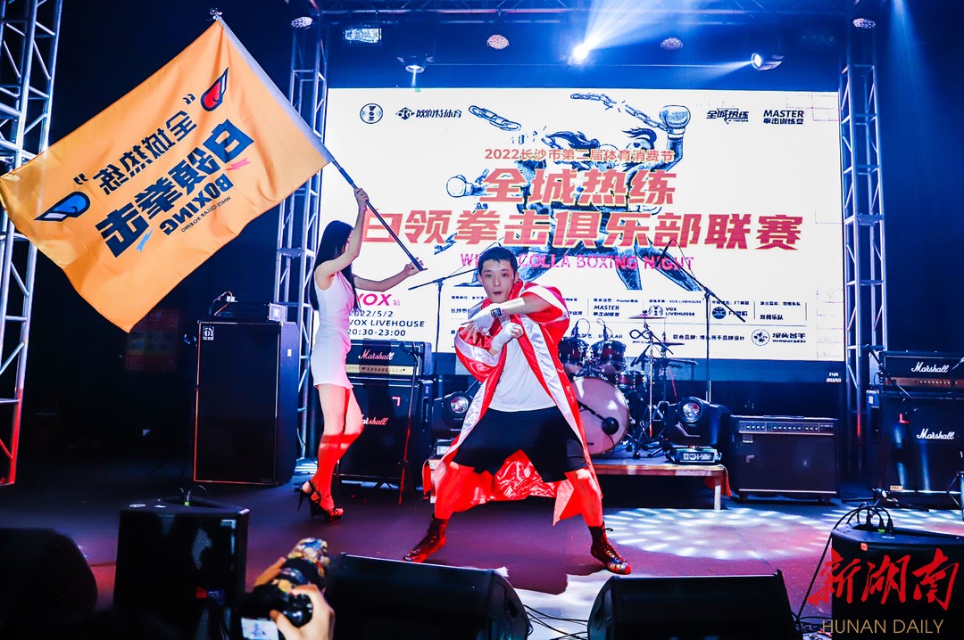 新湖南客户端5月3日讯(通讯员 谢超)5月2日,“全城热练”白领拳击俱乐部联赛在长沙市梅溪湖国际文化艺术中心小剧场举行。当晚赛事现场人潮涌动,6组精彩对决,吸引台下观众的加油声、呐喊声一浪接一浪。