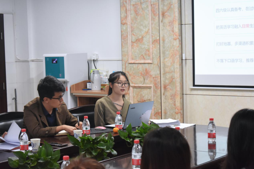 保研至华南理工大学的2018级学生肖锦湘做学习经验交流。她从专业学习、英语学习、竞赛科研三个方面进行了分享。她勉励学弟学妹们走出寝室,多去图书馆或者自习室学习;强调学习英语的重要性,尽快通过四六级;鼓励大家多跟老师主动交流,及时解决困惑的问题。会上,她还准备了学习资料赠送给少数民族同学。
