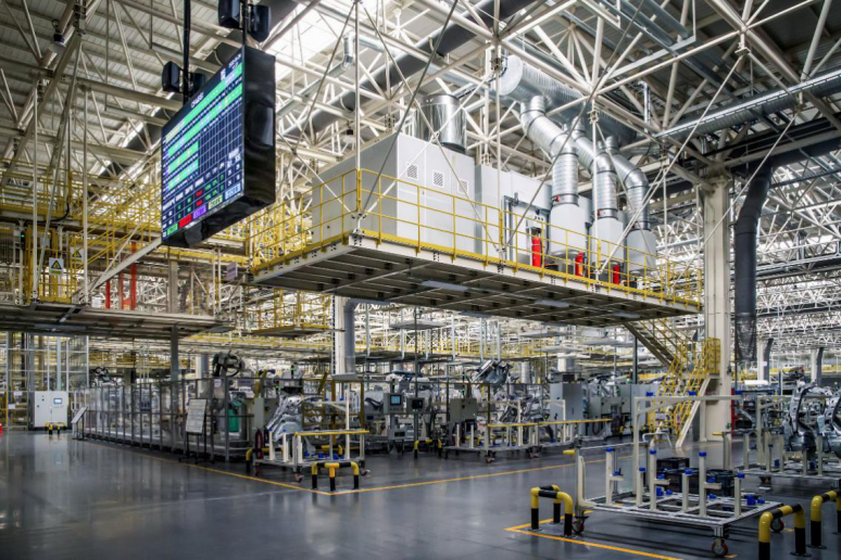西安超级智能环保工厂的焊装车间,在焊接密集区域设置封闭空间,并在各个焊接点配备集尘设施,将烟尘收集后统一由焊烟净化装置处置高空排放,能够更完整地解决有害物质的整个处理过程的二次污染问题。