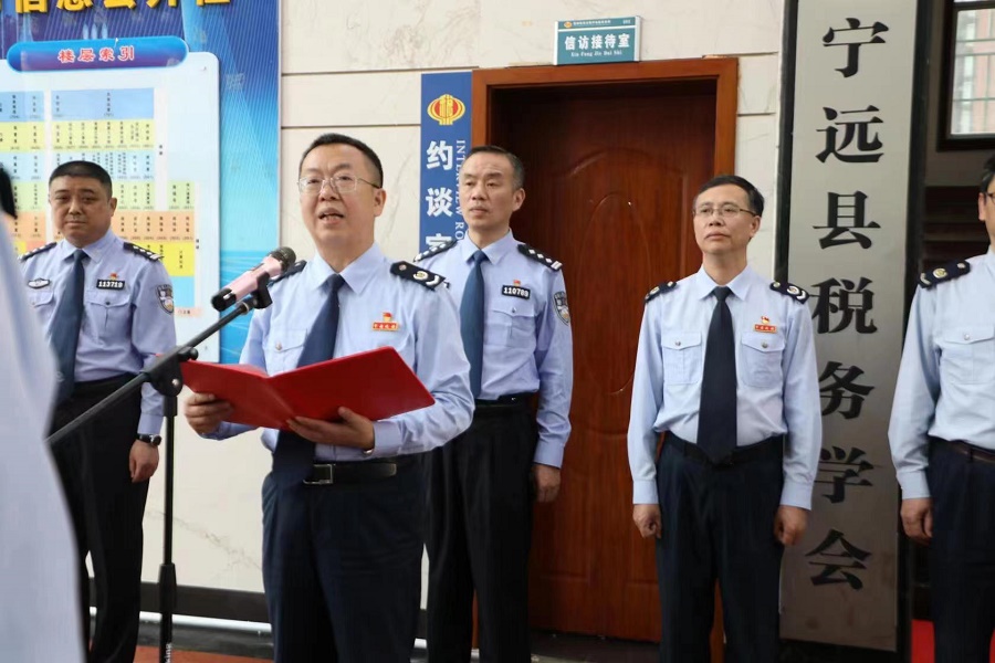 揭牌仪式由县税务局党委书记,局长黄靖主持,宁远县人民政府副县长、公安局长胡少波与国家税务总局永州市税务局稽查局局长肖冬旺共同揭牌。
