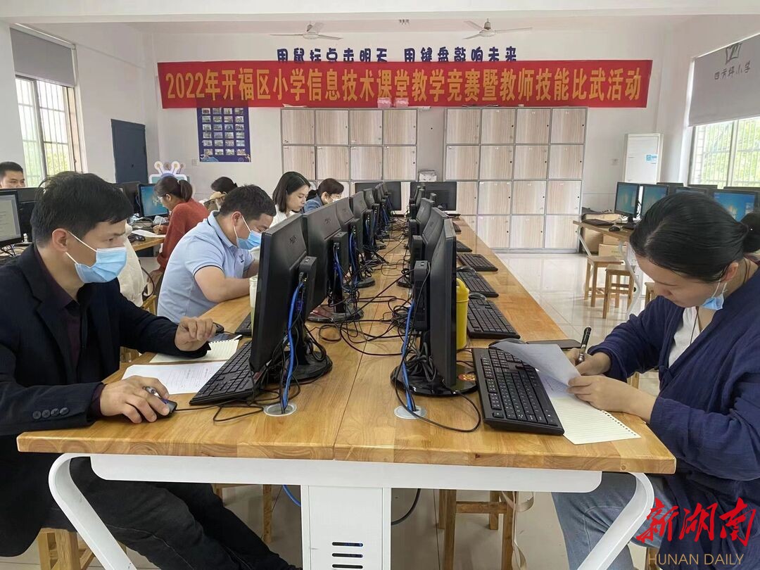 科教新报·新湖南客户端讯(通讯员 徐瑶) 为进一步深化课程改革,深入研究“核心素养”下如何培养学生的信息技术能力,交流小学信息技术老师课堂教学经验、方法,展示优秀教师的教学技能及课堂教学风采。5月20日在长沙市开福区四方坪小学举行了2022年开福区小学信息技术课堂教学竞赛暨教师技能比武活动。湖南省教育科学研究院信息技术教研员杨玲老师、长沙市教育科学研究院信息技术教研员黄文斌老师、开福区教育科学研究中心宋健老师担任评委。
