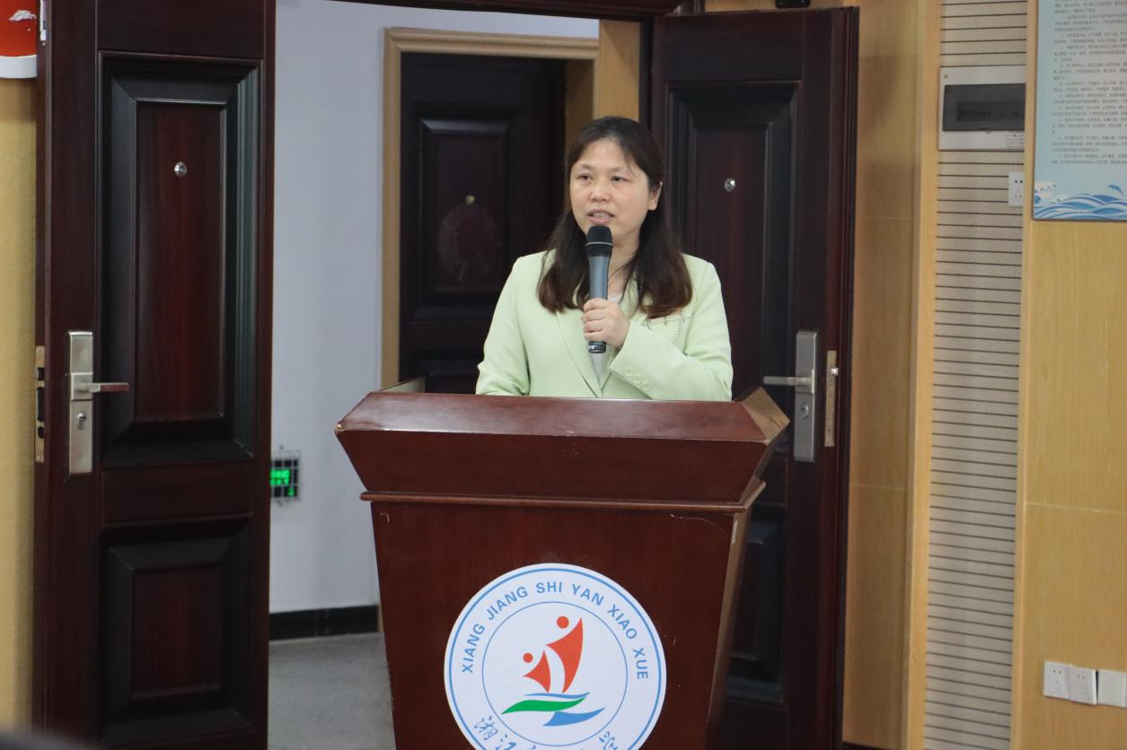 李晓丽代表岳麓区教育局感谢长沙市教科院专家对岳麓教育的精准把脉和针对性指导;李晓丽在讲话中为学校点赞,湘江实验小学以“唤醒生命的喜悦与美好”作为学校的办学理念,重视学生的习惯养成与品格教育,关注学生的全面发展,努力构建适合师生共生长的校园教育新生态,在区内呈现出蓬勃发展的态势。李晓丽在讲话中强调,充分利用智慧教育赋能学生成长,创新“三趣三态课堂”,构建“常态、云上、生活”教学模式,充分激发学生学习兴趣,培养学生理趣、情趣,提升教学效能,促进教育内涵发展,学生全面发展。
