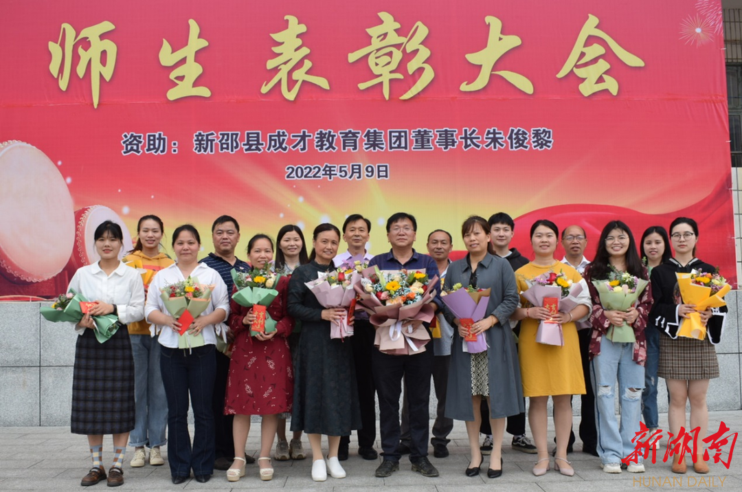 新湖南客户端5月11日讯(通讯员 刘纪新 孙敏娟)“感谢朱总的奖励,我们绝不辜负朱总的殷切希望,在以后的工作中再接再厉,再创佳绩!”5月9日上午,新邵县寸石镇花桥学校老教师罗志珍接到爱心企业家朱俊黎手中的鲜花和奖励红包时连声道谢。