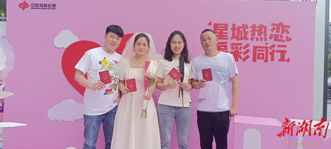 (芙蓉区婚姻登记大厅外,长沙福彩为新人赠送公益彩票)