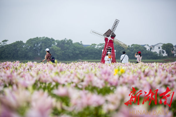 初夏时节,位于浏阳市沙市镇东门百亩百合陆续绽放,五彩缤纷的百合花海,吸引游客前来赏花游玩和采摘体验。