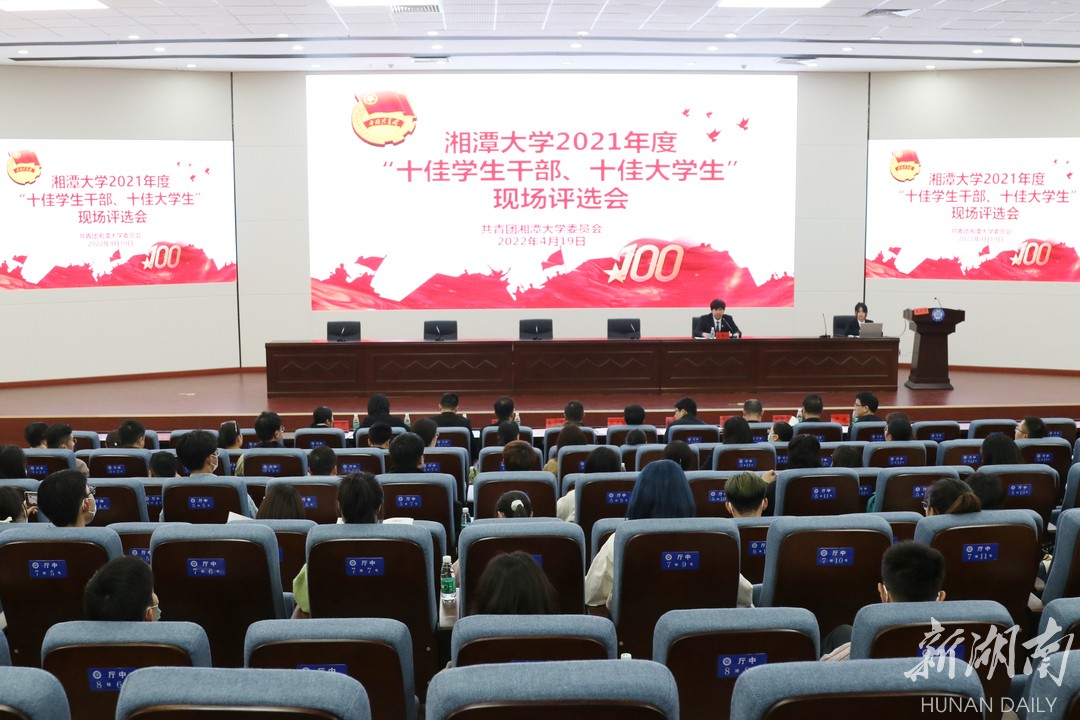 湖南日报·新湖南客户端5月4日讯 (通讯员 刘嘉莹 彭宇璐 袁航)学习榜样精神,汲取榜样力量。近日,湘潭大学2021年度“十佳学生干部”“十佳大学生”现场评选会在研究生楼学术报告厅举行。校团委、职能部门相关负责人和各学院学生工作负责人,以及各校级组织代表、各学院学生代表参加了评审会。