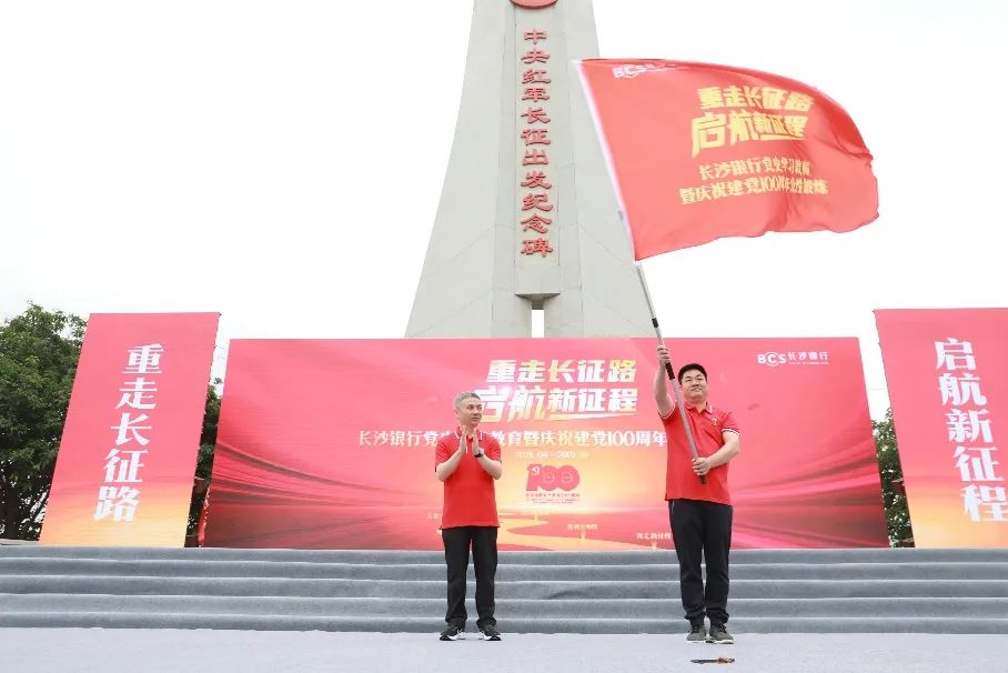 2021年4月7日,于都河畔,长征源头,伴随着激昂的唢呐《十送红军》,长沙银行党史学习教育暨庆祝建党100周年党性锻炼在江西于都中央红军长征出发地纪念园启动。来自长沙银行全系统100余名党员代表成为“首批学员”。