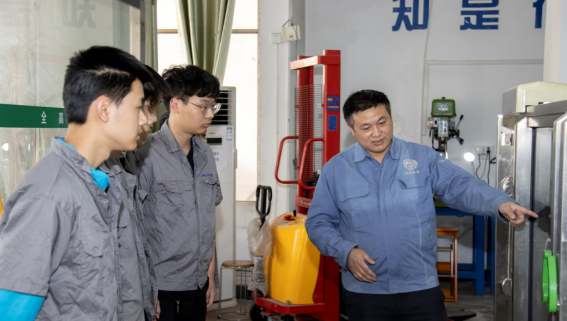 (学校轨道交通装备智能控制学院院长、湖南省芙蓉教学名师、“全国高校黄大年式教师团队”负责人段树华教授在指导学生实习实训)