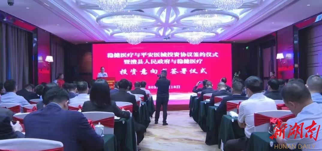 湖南日报·新湖南客户端5月20日讯(通讯员 陈励为)5月18日下午,稳健医疗与平安医械投资协议签约仪式暨澧县人民政府与稳健医疗投资意向书签署仪式在瑞高酒店举行。市政协党组副书记、副主席汤祚国出席并讲话,县委书记王兆铭致辞。稳健医疗董事长李建全,县委副书记、县长王启武,县领导张见明、金贤松、高建平、刘黎、朱宇、夏金梅出席。县委常委、常务副县长李阳主持签约仪式。