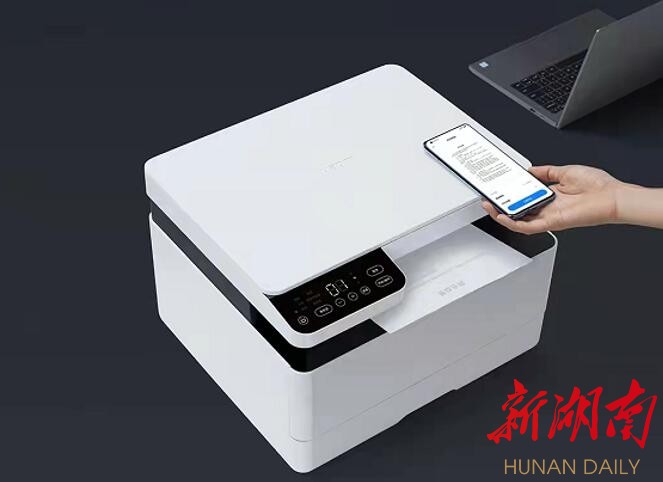 此款激光打印一体机由汉图科技研发,体积与传统打印机相仿,但外观更加时尚简约,内置NFC智能芯片,手机轻轻一碰就可实现连接打印,可通过感应唤起相关客户端APP页面,安卓手机打开WPS应用内文档,即可进行打印,相比较传统打印机,又快捷又方便。它还可实现高效配网、多终端无线连接,手机、平板、电脑,均可通过米家APP或者小米打印APP快速连接打印机,且支持远程打印。