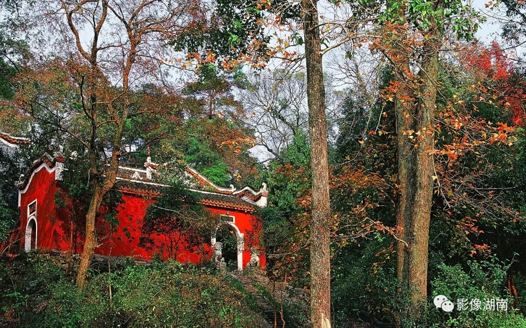 前往祝融寺庙的山路,蜿蜒于山顶,松树排排而立,古木参天,环境幽静。七十二峰,峰峦如聚,山中的木鱼声,隐约从风中传来。