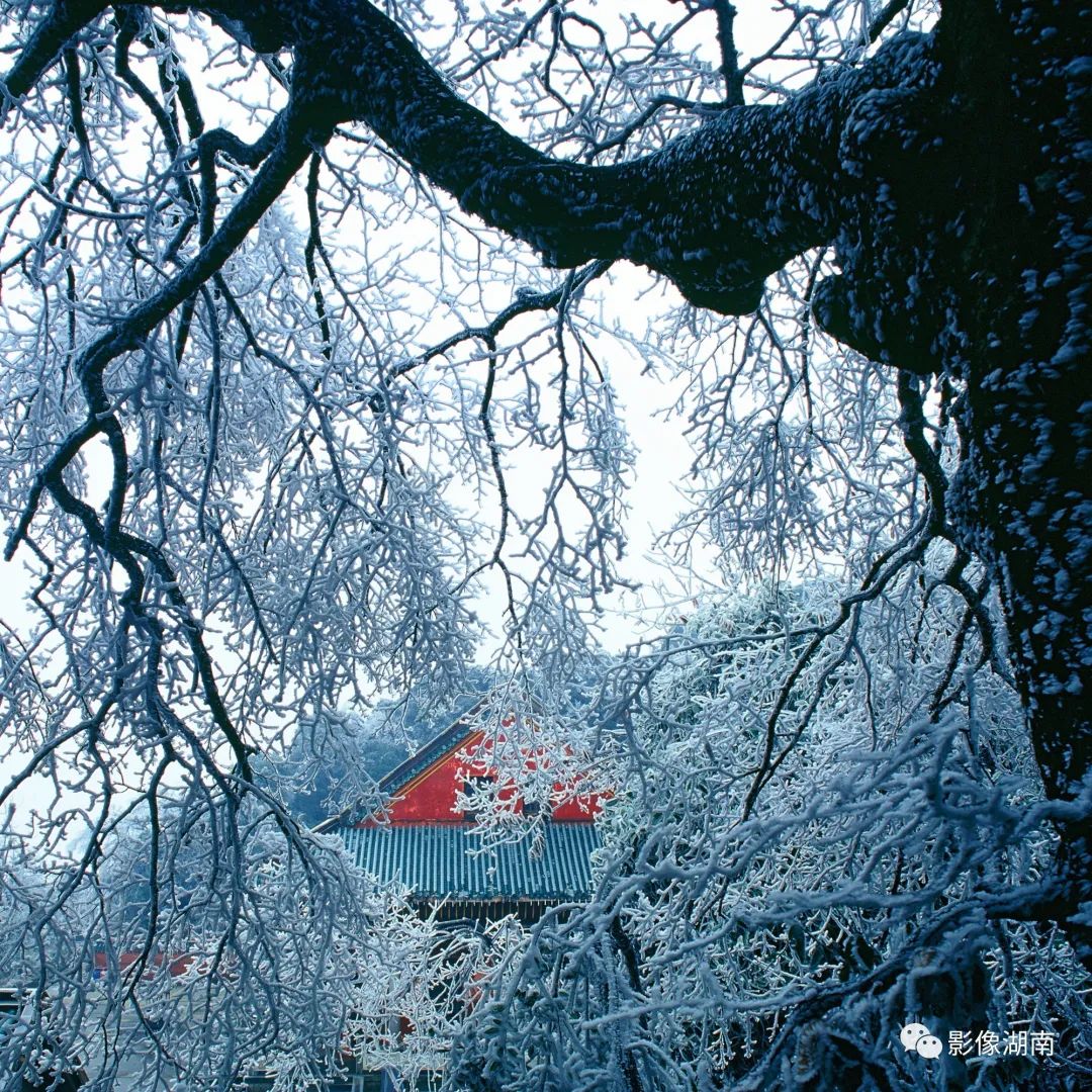 每年冬天,有了雪的滋润,七十二峰必然更显韵味。独特的地理环境也造就了南岳山上奇特的“南国雾淞”景观,雕琢而成的一尊尊植物冰雕千姿百态,犹如一座天然的冰雕博物馆;殿堂愈加幽静、神圣;洁白晶莹的霜花缀满了枝头……酿满了诗情画意,荡漾了整个冬季!