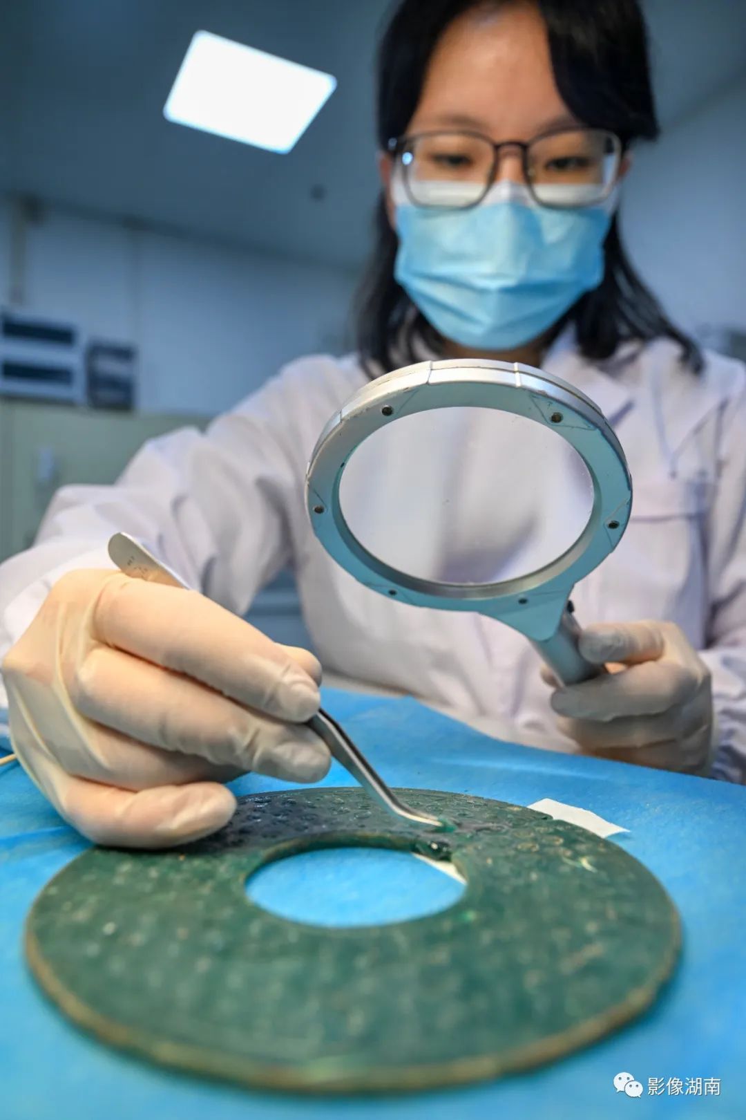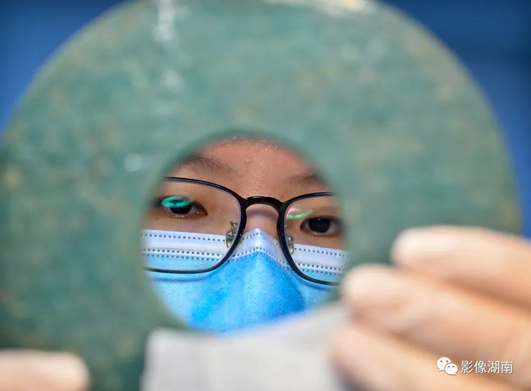 5月12日,文物科技保护中心金属陶器修复室,文物修复员周珺在修复战国时期玻璃璧。