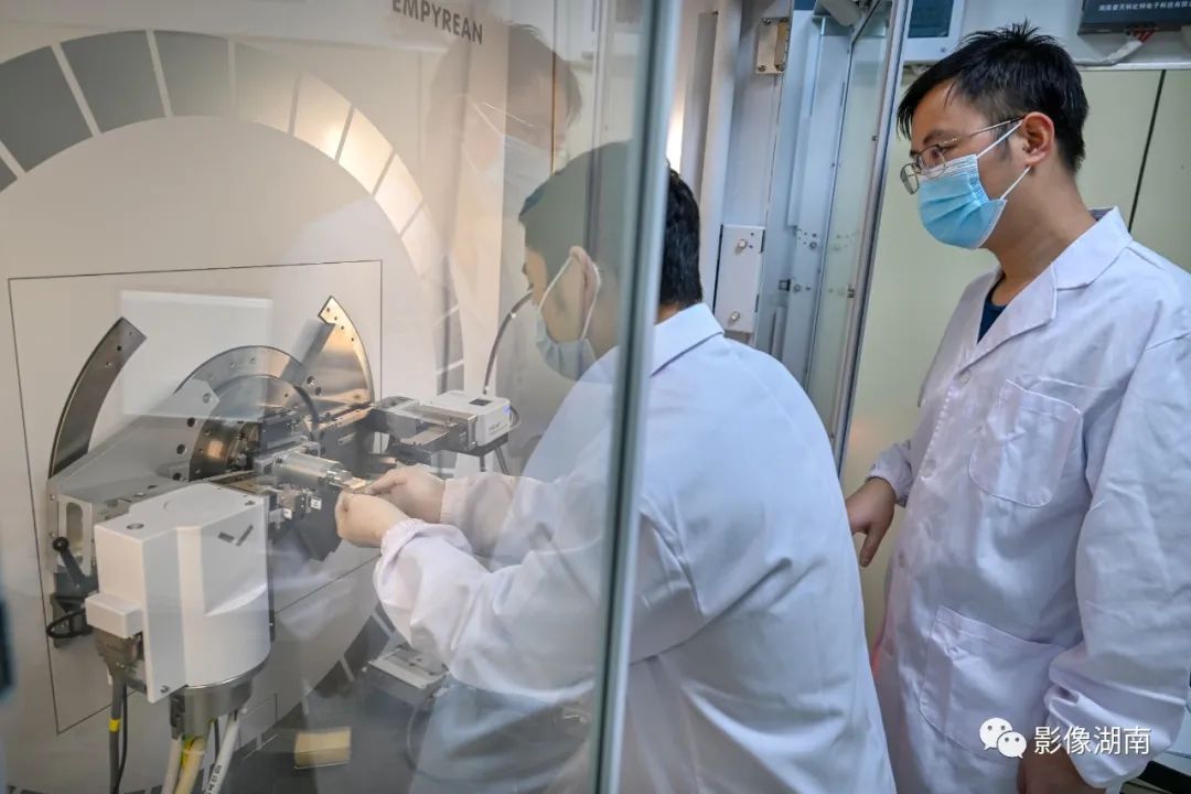 5月12日,长沙博物馆文物科技保护中心仪器分析室,修复人员通过X射线衍射仪对文物陶器脱落的样品进行检测,分析文物样品材料结构。