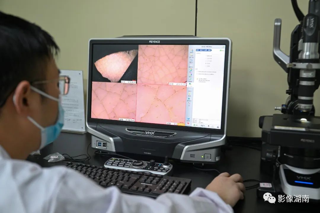 5月13日,文物科技保护中心仪器分析室,文物修复员用超景深显微镜观察长沙窑文物的微观世界。
