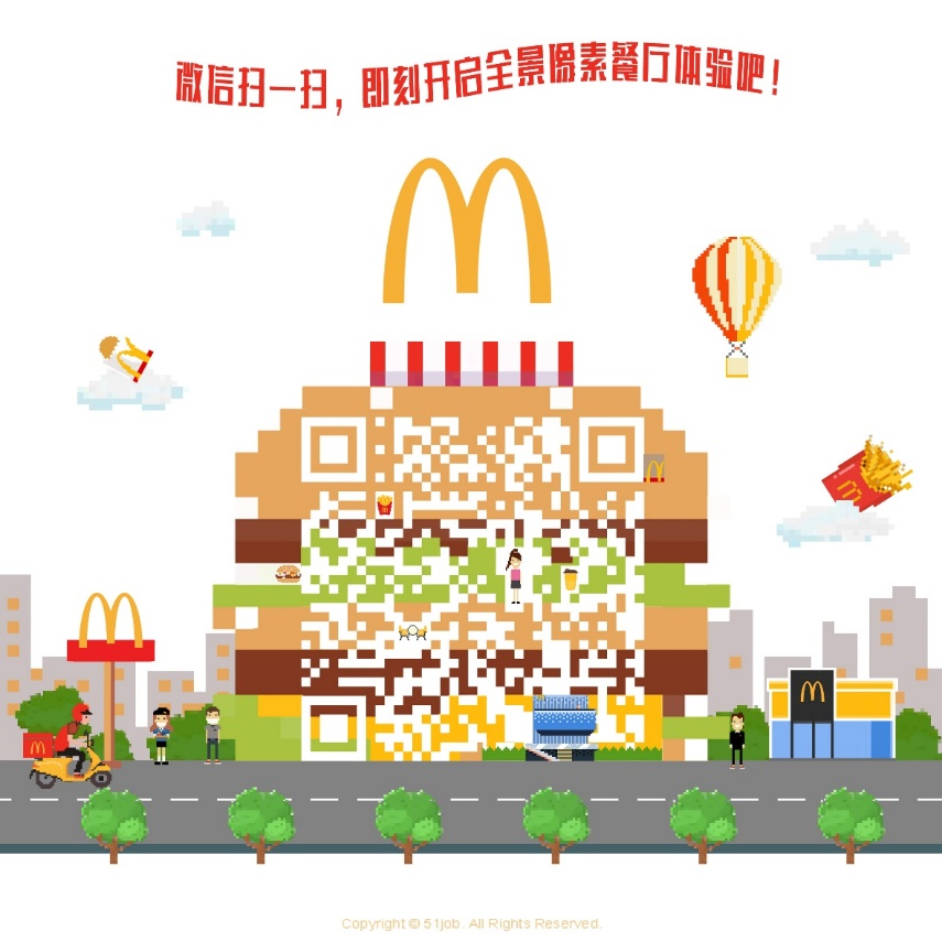“今年,全国麦当劳餐厅都将同时敞开大门欢迎应聘者,线上线下结合,更有趣直观地展现麦当劳的日常工作与企业文化,扫码全新上线的“麦当劳全景式餐厅体验”,可以提前帮助全国各地的年轻人沉浸式地感受麦当劳餐厅的日常工作,更可一键投递简历。”王广一介绍。