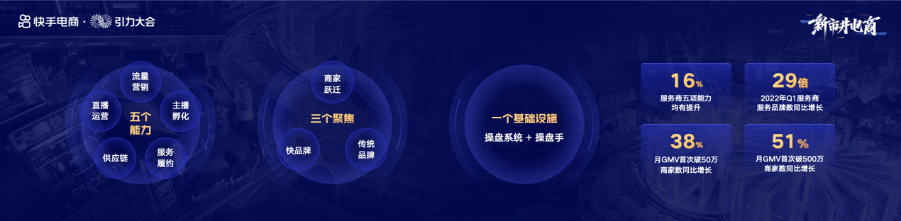 此前,快手电商提出服务商的五大能力模型,要求服务商在流量营销、主播孵化、服务履约、供应链、直播运营方面有突出能力。经过一年的探索,进一步形成了以操盘系统和操盘手为核心的新的服务商基础设施。
