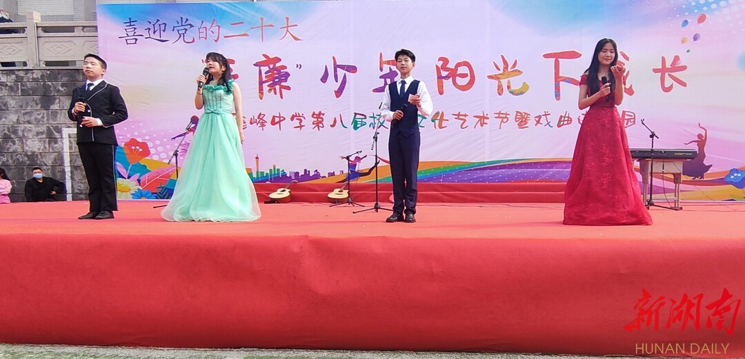 湖南日报·新湖南客户端5月20日讯(通讯员 钟燕)5月18日上午,桂阳县鹿峰中学举行第八届校园文化艺术节暨戏曲进校园活动,活动内容丰富多彩,展现了全体师生积极向上、勇于创新的精神风貌。