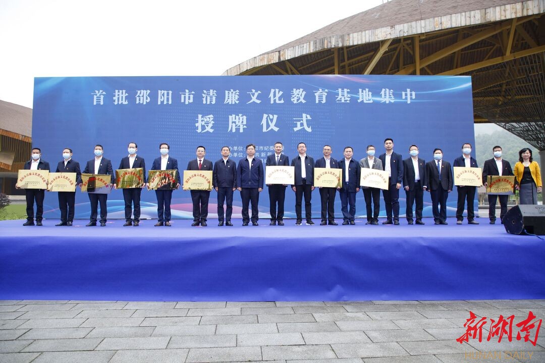 湖南日报·新湖南客户端5月13日讯(通讯员 陈湘林 记者 肖洋桂)5月13日,首批“邵阳市清廉文化教育基地”集中授牌仪式在新邵县举行。经过申报、评审等程序,邵阳市廉政警示教育中心、新邵县廉政文化教育基地、邵东市贺绿汀故居、隆回县魏源故居、绥宁县大园村四知堂等11个单位被统一授牌“邵阳市清廉文化教育基地”。邵阳市委常委、市纪委书记、市监委主任曾市南等领导参加授牌仪式并为基地授牌。