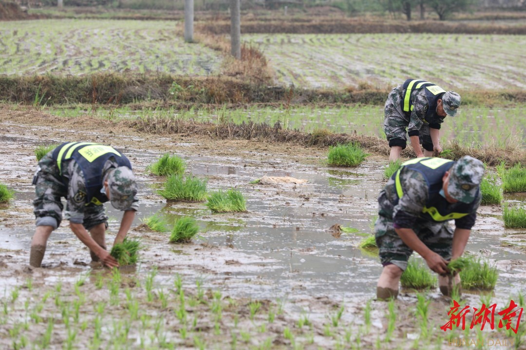 5月初,正值早稻插秧关键期和高峰期,邵阳县人武部组织21支民兵志愿服务队,帮助村民开展春耕生产。