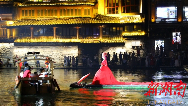 湖南日报·新湖南客户端5月25日讯(特约记者 吴东林 通讯员 肖昕翔)5月24日,一批来自省内的千人旅游团走进湘西土家族苗族自治州凤凰古城,看演绎、赏美景、品民俗,尽情享受浪漫十足的“夜凤凰”,凤凰古城旅游市场迎来了小高峰。