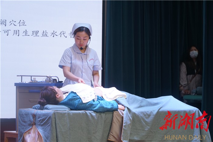 现场,该院针灸科、心病科、产科分别进行了面碗脐灸、穴位贴敷、姜灸疗法的现场表演展示,清晰的病理讲解及治疗手法演示,充分体现了中医护理的魅力,其他科室的护理人员还现场分享《乡土中国》、《唤醒护理》等书籍。湘西州民族中医院一直立足中医药民族医药特色优势,通过日常组织医护人员进行读书活动分享竞赛、中医护理特色操作大赛等,不断提高医护人员的整体素质。