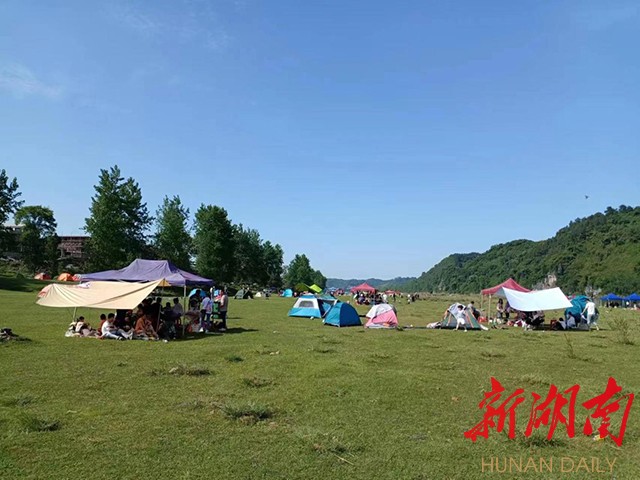 在洪江市沅河镇的十里村、沅城村和安江镇下坪村的沅水之滨,帐篷音乐节燃爆全场,游客享受烧烤、美食、啤酒、音乐带来的乐趣。在洪江市黔城镇茶溪村的知青小屋,游客摸泥鳅,体验田园生活,重温劳动生产的岁月。在洪江市安江镇稔禾溪村,游人们在感受采摘桑葚乐趣之余,还可现场制作桑葚酒。如画的自然风光,良好的生态环境,特色的民俗文化,丰富的产业资源,热情好客的村民,让越来越多的人在这个“五一”假期沉醉洪江。